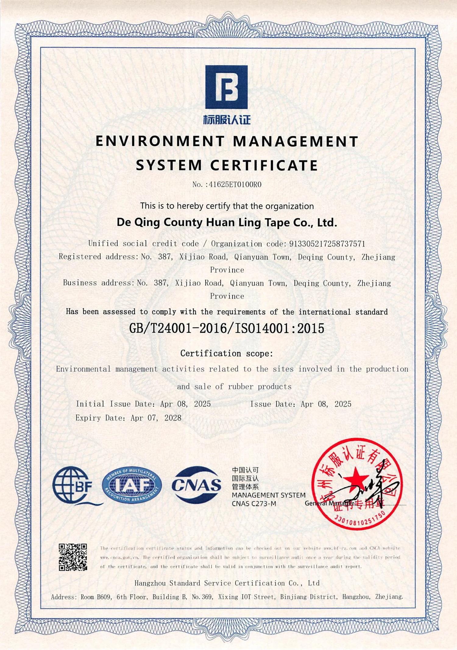 Environmental Management System certification demonstrating our commitment to minimizing environmental impact and sustainable manufacturing.