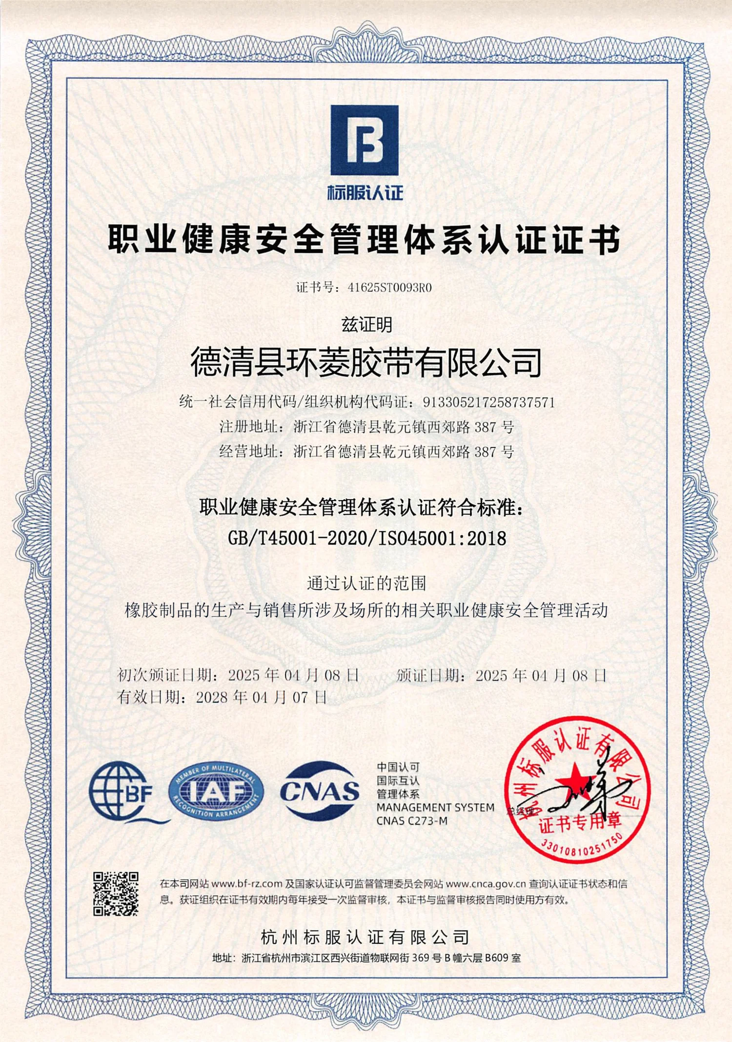 Occupational Health and Safety Management System certification ensuring safe working conditions and preventing work-related injuries.