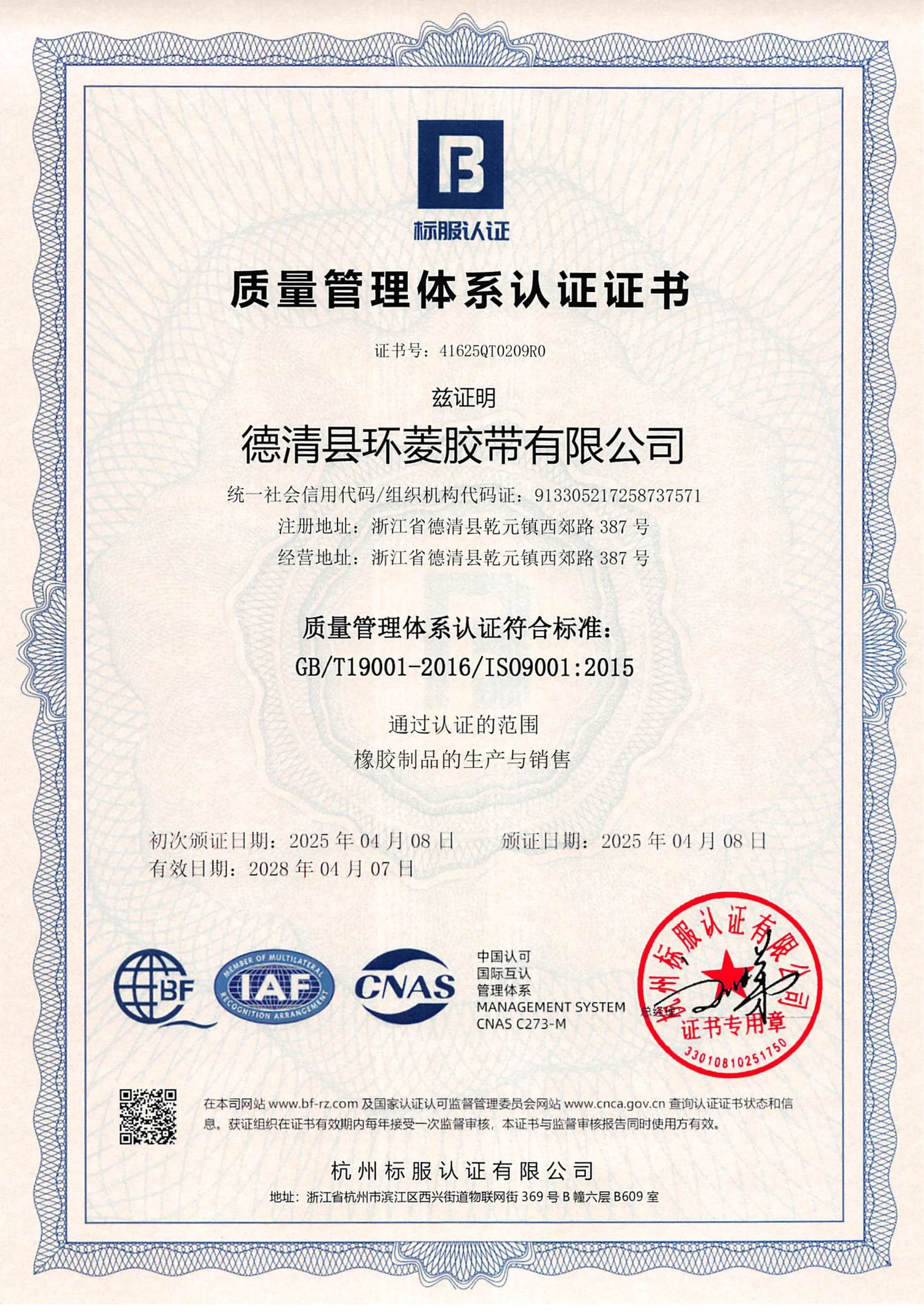 Quality Management System certification ensuring consistent product quality and customer satisfaction across all manufacturing processes.